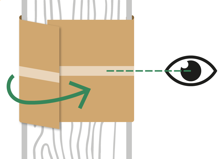 Laat de tweede persoon de kartonplaat strak rondom de boom fixeren op ooghoogte.