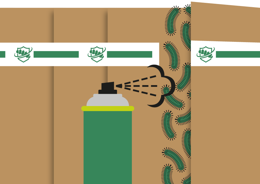 Kijk in de val door met een scherp mes het plakband door te snijden en een schub open te maken. Pas op! Ziet u rupsen, bescherm uzelf dan met de lijmspray.