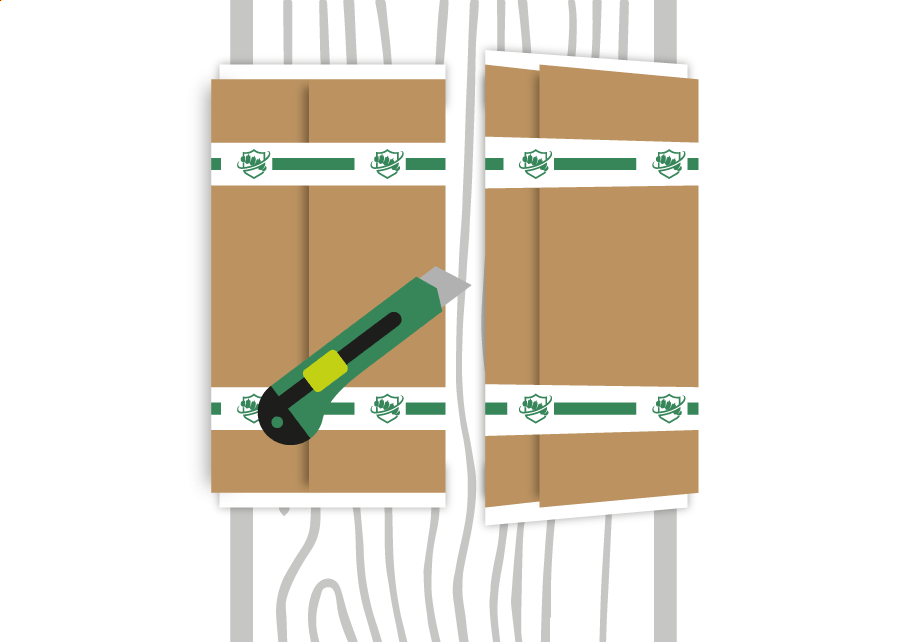 Druk het plakband stevig tegen de boom aan, zodat de rupsen niet onder het karton kunnen kruipen.