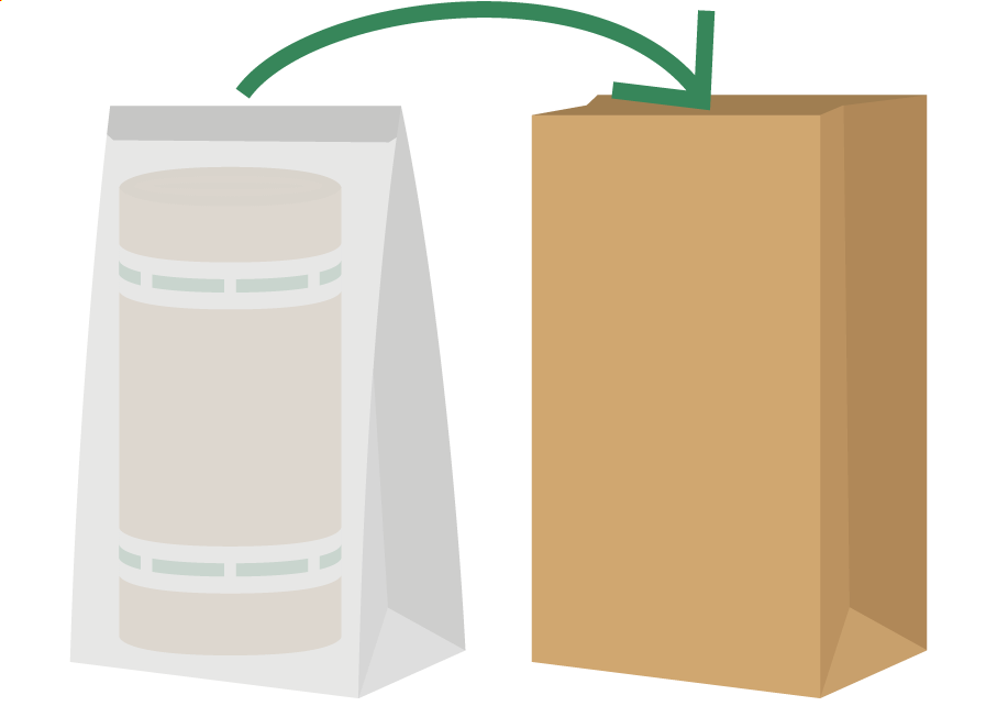 Plaats de plastic zak in de stevige papieren zak waarin het pakket is geleverd.